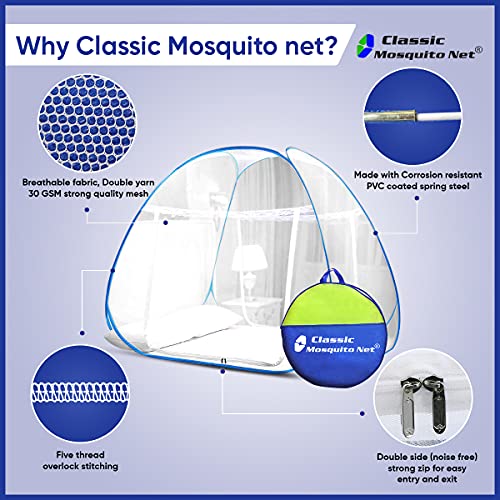 Classic Mosquito Net for Bed Queen Size, Polyester, Foldable for Double Bed, Strong 30GSM, PVC Coated Steel – Queen Size, Blue