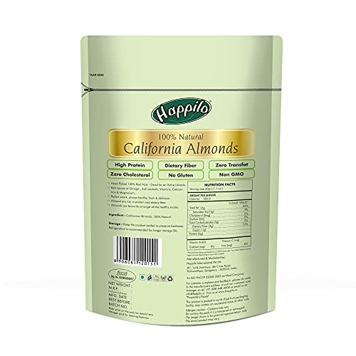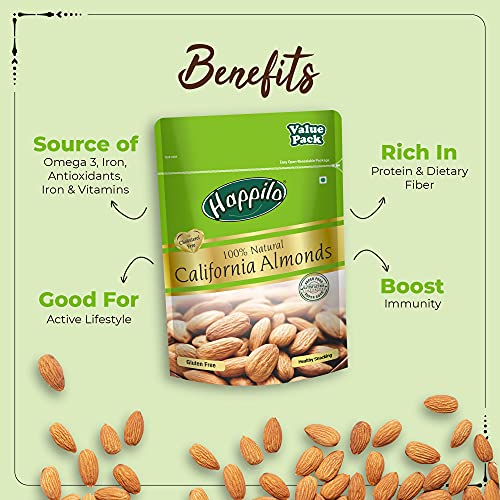 Happilo 100% Natural Premium California Almonds 500g Value Pack Pouch | High Quality Badam Giri | High in Fiber & Boost Immunity | 100% Real Nuts | Gluten Free