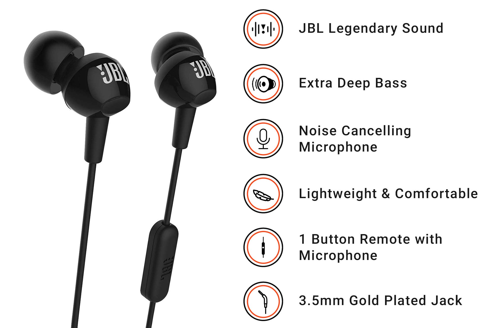 JBL C100SI In-Ear Headphones with Mic (Black)